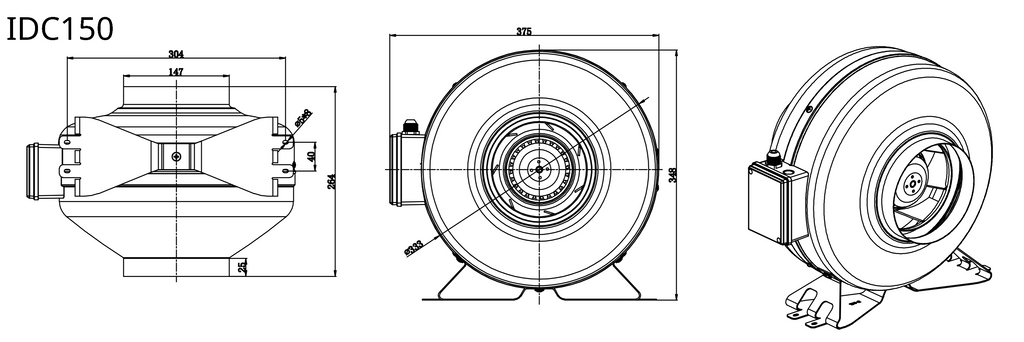 IDC150 – Extractor centrífugo en línea de alta presión para conductos largos.